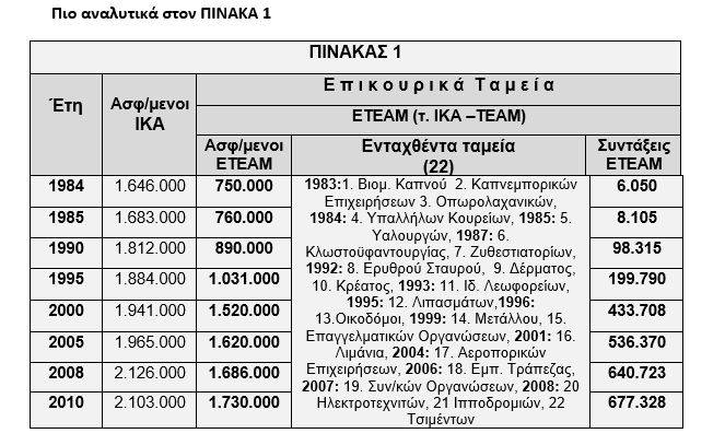 Το 1979 με τον νόμο 997/79 συστάθηκε το ΙΚΑ – ΤΕΑΜ, λειτούργησε όμως το 1983 (Ν.1358/83), ενώ το 2003 με τον νόμο 3029 μετονομάζεται σε ΕΤΕΑΜ. Το ταμείο αυτό αν και φαινομενικά έγινε για να ασφαλίσει όσους (του Ιδ. τομέα) δεν ανήκαν σε κλαδικό επικουρικό, επί της ουσίας (όπως απεδείχθη) έγινε για να καλύψει τα κλεμμένα αποθεματικά των προηγούμενων ταμείων!