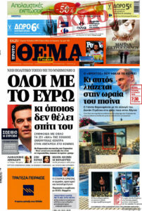 -Στο πρωτοσέλιδο της περασμένης Τετάρτης, η «Δημοκρατία» μιλά για «ανεξήγητα υποτονικό – συναινετικό Τσίπρα στον καταλογισμό των ευθυνών» (11/8).