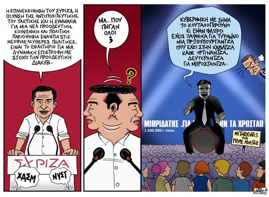 Η αδυναμία του ΣΥΡΙΖΑ να ασκήσει αριστερή αντιπολίτευση στη ΝΔ είναι το άλλο όνομα της αδυναμίας να εγγυηθεί καλύτερη διαχείριση από τη σοσιαλφιλελεύθερη δική του. Αλλά και της πεποίθησης ότι σοβαρή πολιτική είναι πρωτίστως, αν όχι μόνο, η κυβερνητική πολιτική – εξού και το ζήτημα είναι η επιστροφή στην κυβέρνηση, με κάθε τρόπο. Ελλείψει κινημάτων που θα συνέβαλαν στην ήττα της ΝΔ, η επιστροφή περνά από την «κατάρρευση» της ΝΔ και μετακινήσεις προσωπικού μέσα στο κράτος. Η επικράτηση αυτής της λογικής στο χώρο αριστερότερα της ΝΔ, αντί να απελευθερώνει χώρο στ’ αριστερά του ΣΥΡΙΖΑ, στην πραγματικότητα αφήνει τη ΝΔ χωρίς αντίβαρο. Παλιότερα, το γνωστό αυτάρεσκο σύνθημα έλεγε ότι, μέσα σε τόση συναίνεση, «η μόνη αντιπολίτευση είμαστε εμείς». Αλλά ο ανταγωνιστικός χώρος δεν «είναι» η αντιπολίτευση επειδή το αναλαμβάνει ή αυτοανακηρύσσεται ως τέτοια: «είμαστε η αντιπολίτευση» όταν αυτό που λέμε κι αυτό που κάνουμε αποκτά ηγεμονικό ρόλο στην κοινωνική και πολιτική αντιπολίτευση. Αυτό είναι πολύ δυσκολότερο. Άλλο που, όπως έγινε και νωρίτερα, σε συνθήκες μεγάλης ρευστότητας, μπορεί να ξαναγίνει.