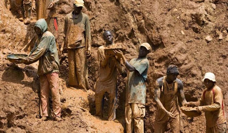 Οι σκλάβοι που δουλεύουν εκεί σε άθλιες συνθήκες (το 90% των νέων της περιοχής Kivu, ακόμη και 6χρονα παιδιά), αμείβονται για 12ωρη βάρδια με 1 $, χωρίς εκπαίδευση και μέτρα ασφάλειας και συχνά υφίστανται βιασμούς από τους μεγαλύτερους. Αξίζει να αναφερθεί ότι οι εξαθλιωμένοι αυτοί ‘μεταλλωρύχοι’ όντας πολύ μακριά από πηγές τροφής, επιζούν σκοτώνοντας την άγρια πανίδα και ιδίως τους ορεινούς γορίλλες οδηγώντας τους τελευταίους, σχεδόν στην εξαφάνιση.
