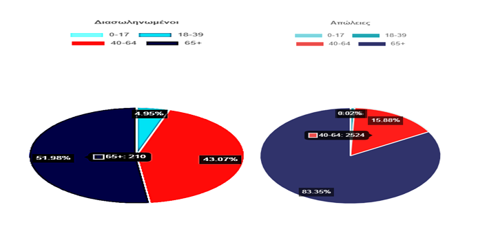 Στην Ελλάδα: 801.208 διαπιστωμένα κρούσματα, πάνω από 8600 τα κρούσματα ημερησίως με τάσεις ανόδου, 16.414 θάνατοι έως σήμερα (9.11.21), πάνω από χίλιοι θάνατοι το μήνα, με τις προβλέψεις εξαιρετικά δυσοίωνες.