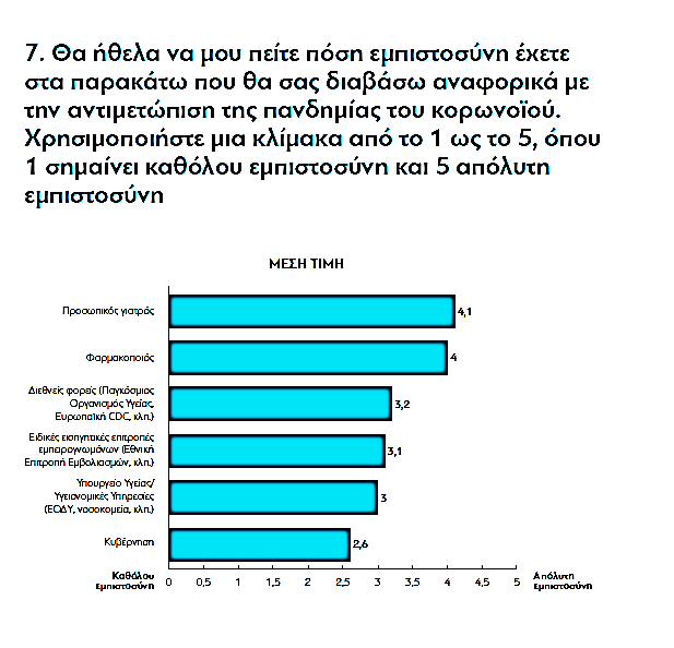 Είναι χαρακτηριστική η απάντηση στο δημοσκοπικό ερώτημα (διαΝΕΟσιs 1121) πόση εμπιστοσύνη έχετε αναφορικά με την αντιμετώπιση της πανδημίας: Η κυβέρνηση με βάση το 5 βρίσκεται στο 2,4.