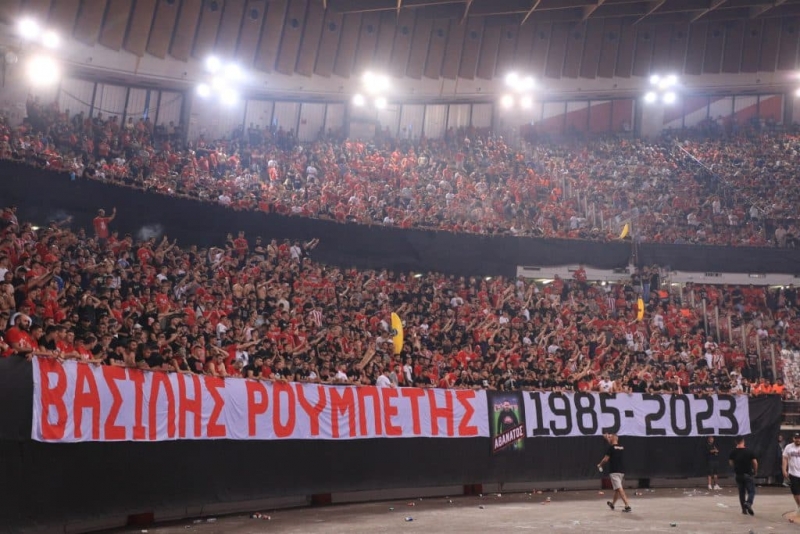 Δεν ήθελα να γράψω γι’ αυτή τη βρωμιά, αλλά αυτό ξεπερνάει τα όρια. Ο λαός του Ολυμπιακού τιμά το δολοφονημένο στέλεχος της Greek Mafia Βασίλη Ρουμπέτη! «Συμβολική κίνηση από τον κόσμο του Ολυμπιακού. Η Θύρα 7 και οι φίλοι του Ολυμπιακού πενθούν σήμερα, για την απώλεια του Βασίλη Ρουμπέτη. Ο κόσμος δεν θα σε ξεχάσει ποτέ Βασίλη. Ένα μεγάλο πανό με το όνομά του είναι μπροστά από το πέταλο, ενώ τηρήθηκε ενός λεπτού σιγή από τον κόσμο.» έγραψε αθλητική εφημερίδα.*