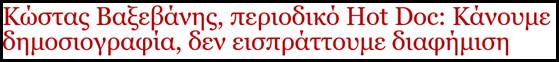 «Τα λόγια πετούν, τα γραπτά μένουν», αναφέρει μια πρόταση που συνηθίζεται να ακούγεται στους δημοσιογραφικούς χώρους. Φαίνεται ότι αυτό το ξέχασε ο εκδότης του περιοδικού «Hot Doc» -και σύμφωνα με δημοσίευμα των «τυπολογιών» από το Σεπτέμβρη εκδότης Κυριακάτικης εφημερίδας «που θα απευθύνεται στο αριστερόστροφο κοινό»- Κώστας Βαξεβάνης.
