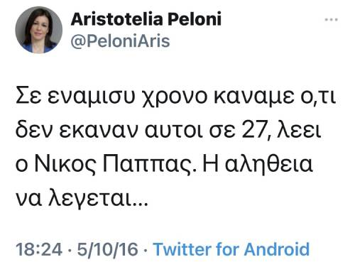 Το πιο καλό όμως είναι που η Αριστοτελία Πελώνη έπαιρνε το μέρος του Νίκου Παππά την εποχή που δίνονταν οι τηλεοπτικές άδειες. Το tweet της τα λέει όλα. Πρέπει να την καλέσουν στην προανακριτική, θα έχει να πει πολλά.