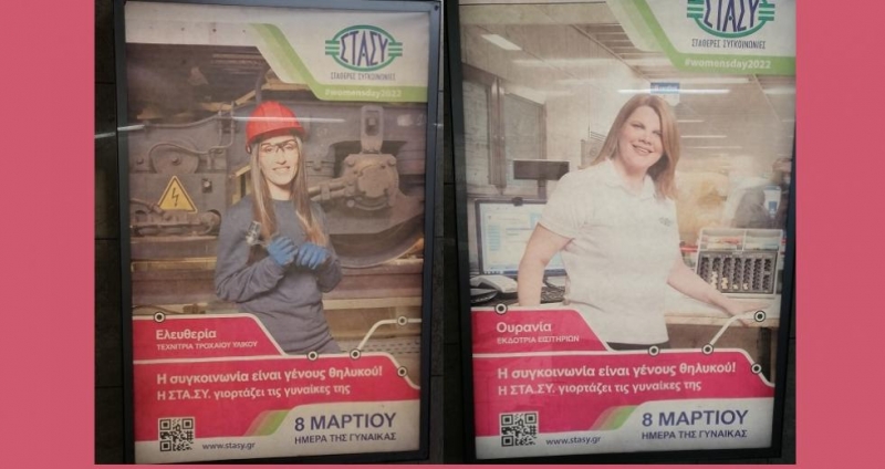 Η ΣΤΑΣΥ γιορτάζει τις γυναίκες της – Ημέρα της Γυναίκας». Και αυτό σε πλαίσιο ροζ! Ροζ! Και η πανηλιθιότητα γένους θηλυκού είναι, αλλά απ’ ό,τι ξέρω ο πρόεδρος της ΣΤΑΣΥ (που αποφάσισε αυτό το αίσχος) είναι άνδρας. Και πως αυτή η αφίσα είναι όλα τα στερεότυπα σε ένα. Ρε πατριάρχες της πρωτοπορίας, θα κάνετε το ίδιο και για τους άνδρες; Σε γαλάζιο πλαισιάκι; (Οσο για τις γυναίκες της ΣΤΑΣΥ που δέχθηκαν να συμμετάσχουν σε αυτό το πράμα, το αφήνω ασχολίαστο…)