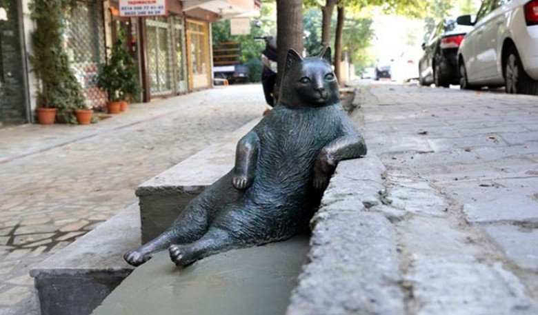 H εμβληματική αραχτή γάτα της Κωνσταντινούπολης, ο Tombili, η οποία πέθανε την 1η Αυγούστου, συνεχίζει να αράζει στο αγαμπημένο της σκαλάκι ενός πεζοδρομίου στην Κων/πολη, αφού σήμερα, παγκόσμια ημέρα Ζώων, αποκαλύφθηκε ένα άγαλμα στη θέση που κάποτε άπλωνε την κορμάρα του ο Tombili.