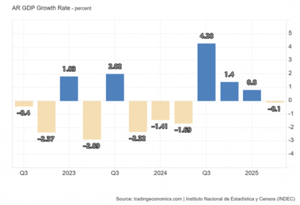 Γιατί συνέβη αυτό; Καθώς η κυβέρνηση είχε ως στόχο να διατηρήσει ένα ισχυρό πέσο για να συνεχίσει να μειώνεται ο πληθωρισμός, έπρεπε να χρησιμοποιήσει τα αποθέματά της σε δολάρια για να καλύψει το έλλειμμα εισοδήματος και επενδύσεων. Το ισχυρό πέσο μπορεί να μείωσε τον πληθωρισμό καθώς μειώθηκαν τα έξοδα για εισαγωγές, αλλά αυτό σήμαινε επίσης ότι οι εξαγωγές της Αργεντινής δεν μπορούσαν να ανταγωνιστούν στις παγκόσμιες αγορές. Και η εξισορρόπηση του κρατικού προϋπολογισμού δεν απέφερε περισσότερα δολάρια, αλλά οδήγησε σε οικονομική στασιμότητα. Πράγματι, τους τελευταίους μήνες, η οικονομική ανάπτυξη έχει εξαντληθεί.