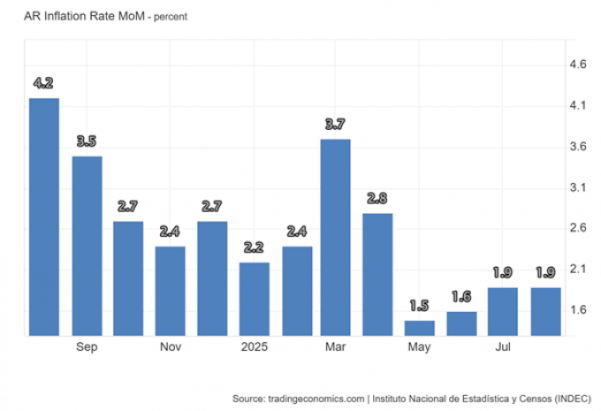 Και, κατά ειρωνικό τρόπο, ακόμη και το τεχνητά υπερτιμημένο πέσο δεν συμβάλλει πλέον στη μείωση του μηνιαίου πληθωρισμού –ο οποίος αυξάνεται τους τελευταίους τρεις μήνες.
