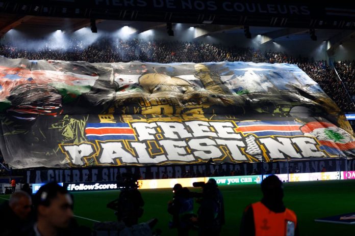 Πριν από ένα μήνα, η εθνική ποδοσφαιρική ομάδα της Ιταλίας αγωνίστηκε εναντίον της αντίστοιχης του Ισραήλ, στο Ούντινε- για τα προκριματικά του Παγκοσμίου Κυπέλλου. Στην πόλη διαδήλωσε ένα πλήθος 10.000 ανθρώπων, με παλαιστινιακές σημαίες, συνθήματα εναντίον της γενοκτονίας – εθνοκάθαρσης και υπέρ της «κόκκινης κάρτας» στις ομάδες του Ισραήλ. Από το Ούντινε ως το Παρίσι, από τη Γκασκώβη μέχρι το Όσλο και από την Νέα Φιλαδέλφεια ως την Τούμπα της Θεσσαλονίκης, «μιλούν» για το παλαιστινιακό – με τον τρόπο τους – είτε οι κερκίδες, είτε οι πόλεις είτε και οι δύο.